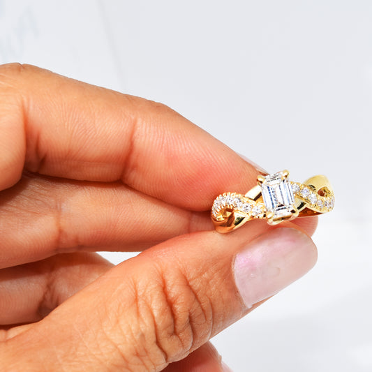 Emerald Cut Diamond Woven band 18K Yellow Gold