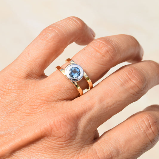 0.7 Ct Aquamarine Clip Ring - 18K Two Tone Gold