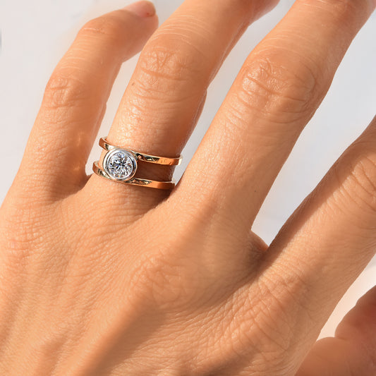 0.7 Ct Diamond Bezel setting Clip Ring - Two Tone 18K Gold