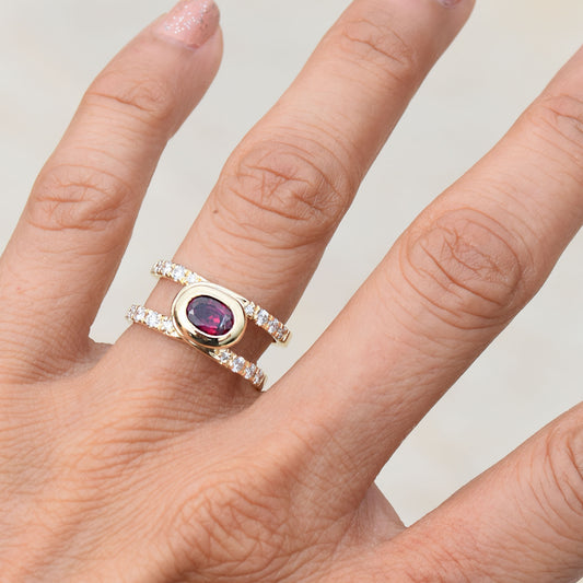 1.27 Ct Ruby Clip Ring with Cut Claw Pave Diamond