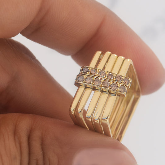 Firenze Ring - Cognac Diamond Pave Double Bar 18k Yellow Gold