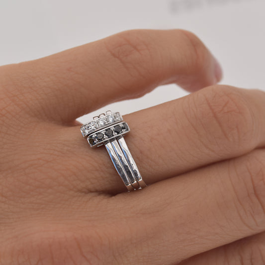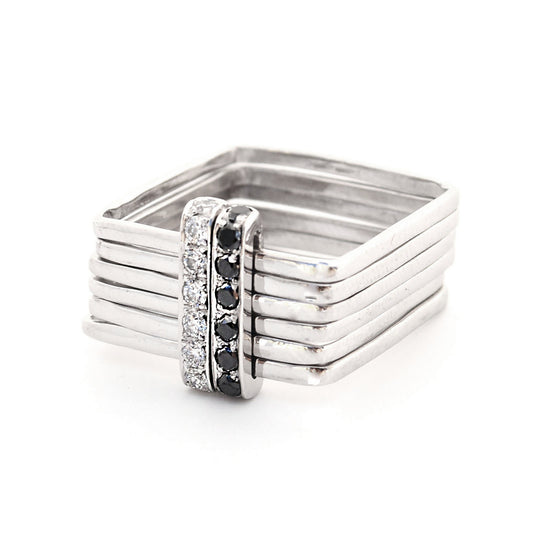 Firenze Ring - Black and White Pave Diamond Double Bar 18K White Gold