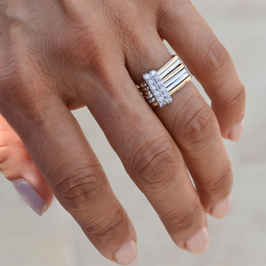 The Firenze Ring is Larissa's signature design. It is a multi band square shape ring that can be customise to suit your style.
