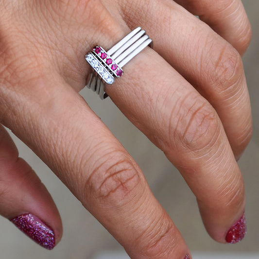 Firenze Ring - 18K White Gold Double Pave Diamond and Ruby Bar