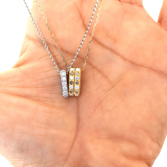 Firenze Pendant - Double Bar Pave diamond intertwined 18K Yellow gold