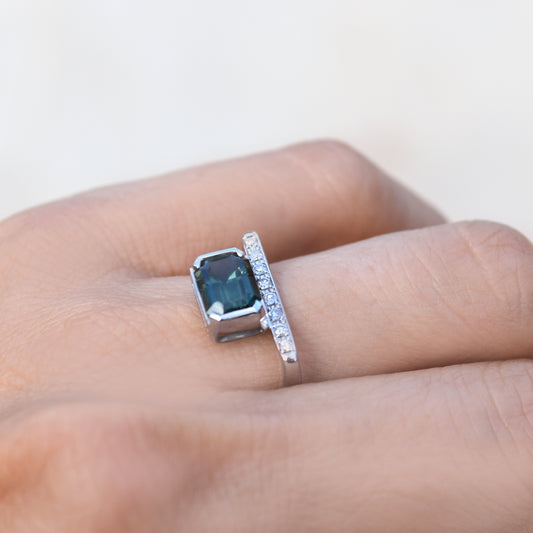 Green Sapphire Clip Ring - 18K White Gold