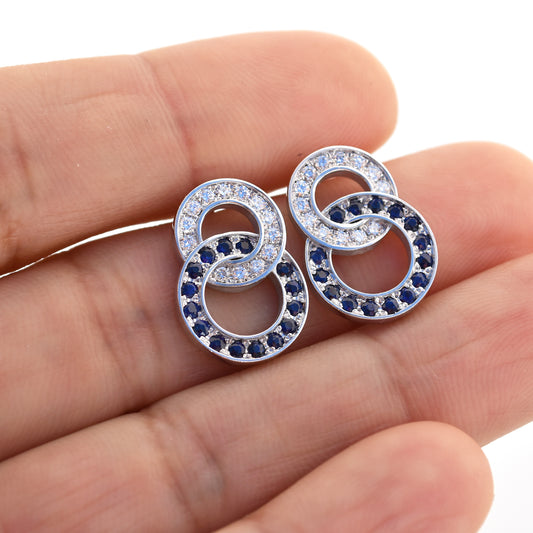 Sapphire and Diamond Pave Circle Studs 18K WG