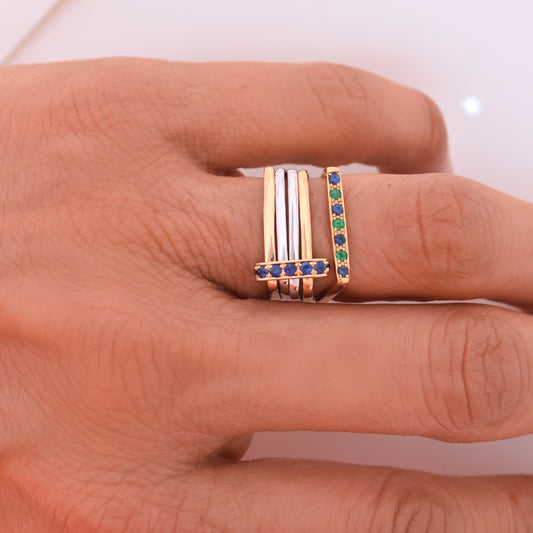 Sleek Square Band - Emerald and Sapphire Pave 18K Yellow Gold