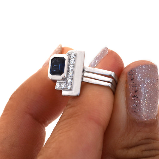 Firenze Ring Two Tone 18K Gold - Sapphire and Pave Diamond Bar