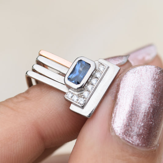 Firenze Ring - Sapphire Bezel Setting and Pave Diamond