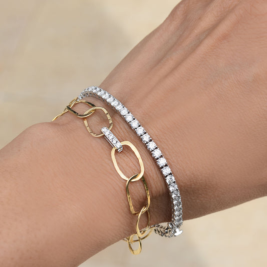 Paper Clip Chain Bracelet with Pave Diamond Bars